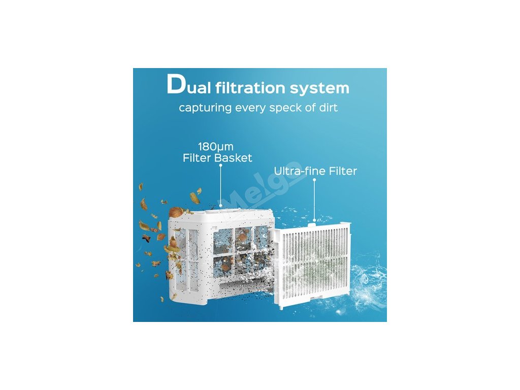 Bazénový robot C2 je vybaven 180μm filtračním košem a 10μm ultrajemným filtrem, který účinně zachycuje nečistoty od listí a velkých částic až po drobná zrnka písku a špíny. To zaručuje křišťálově čistou vodu. Čištění filtru je snadné - stačí zvednout kryt, vyjmout filtry a opláchnout je vodou.