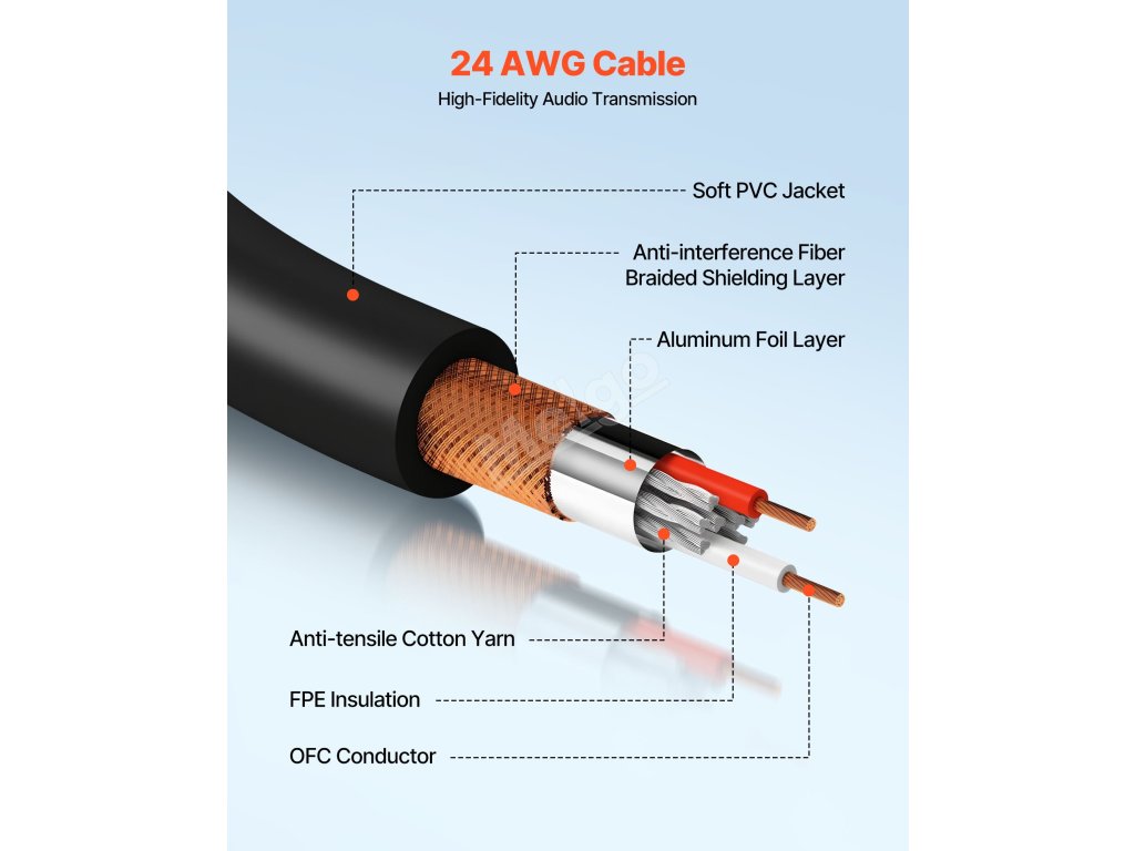 Tento kabel XLR s 24 AWG se vyznačuje vysokou věrností přenosu zvuku. Je vybaven antiinterferenční stínicí vrstvou, která účinně omezuje různé rušivé vlivy a zajišťuje vysoce věrný přenos zvuku.
