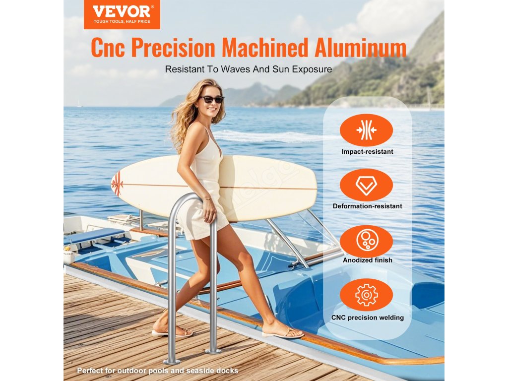 Odborně vyrobená hliníková madla zajišťují, že každý krok při nastupování a vystupování je pevný a spolehlivý. Díky bezešvým svařovacím technikám, které zabraňují korozi a rzi, se naše zábradlí dokonale hodí do doků a zajistí, že vás bude provázet bezpečnost.