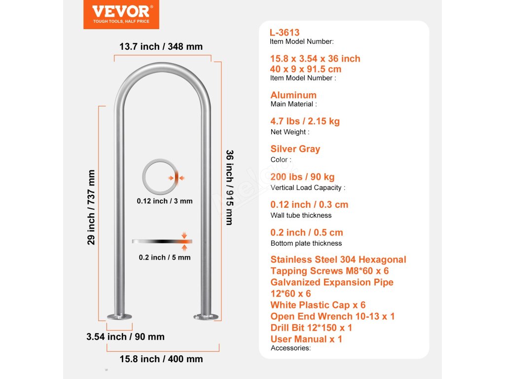 Zábradlí do bazénu 36×13 inch hliník s montážní deskou proti korozi