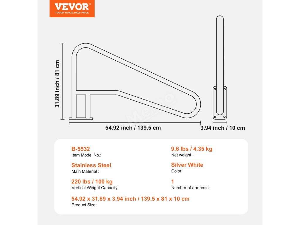 Zábradlí do bazénu 55×32 inch, nerezová ocel, s podstavou a madlem
