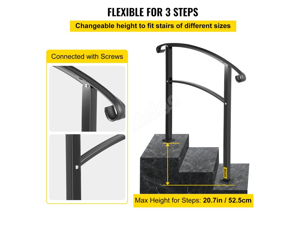 Díky šroubovému spoji je toto vnější schodišťové zábradlí výškově variabilní, aby vyhovovalo různým velikostem schodů. Maximální výška pro schody je 20,7"/52,5 cm, což umožňuje flexibilní přizpůsobení vašim různým potřebám.