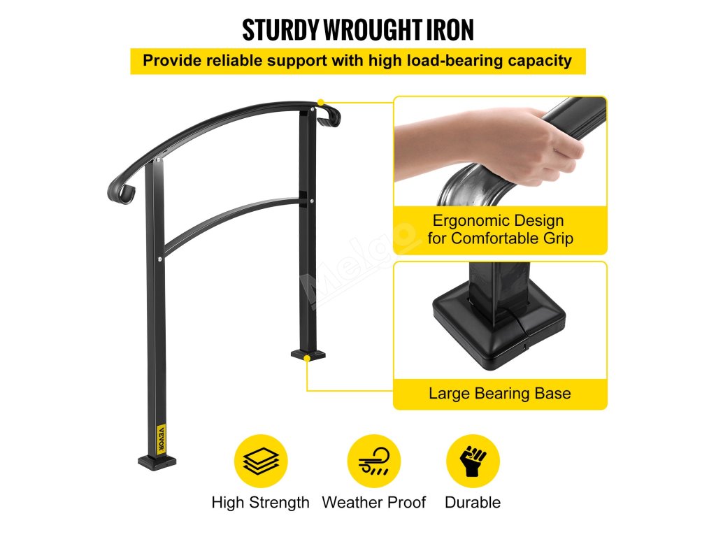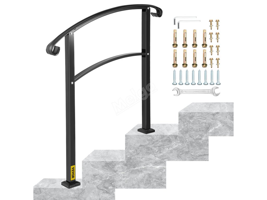 Zábradlí na 1–3 schody, 3 stupně, kované, černé, s montážním setem