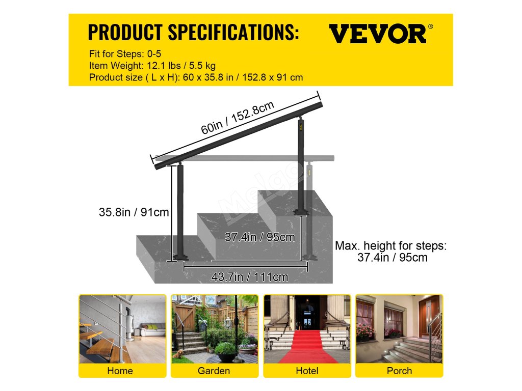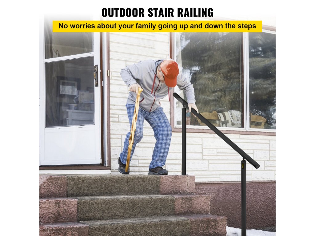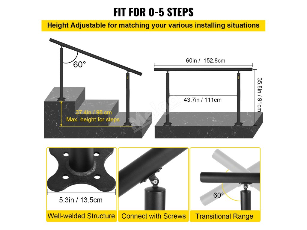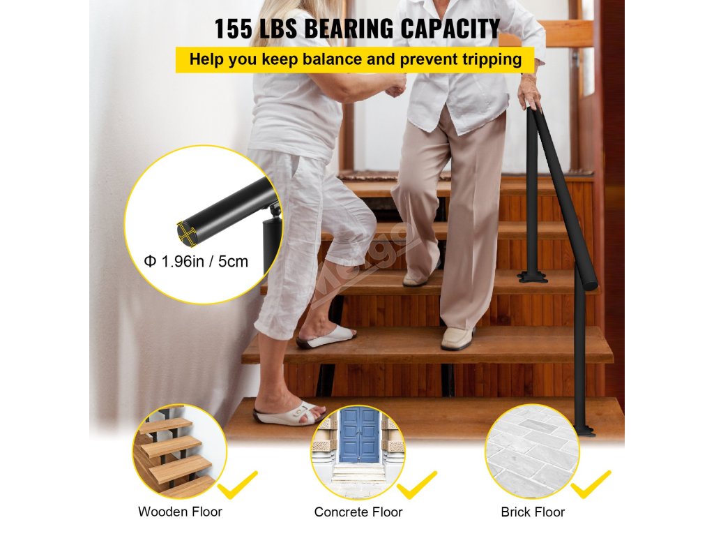 Tato sada schodišťového zábradlí je skvělým pomocníkem pro vaši rodinu při chůzi po schodech nahoru a dolů a je konstruována pro 1-5 schodů a rovné povrchy. Sahá 37,4"/95 cm od země k hornímu schodu.