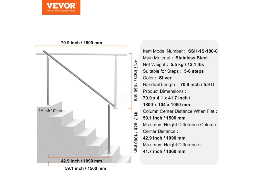Spolehlivé zábradlí VEVOR z nerezové oceli