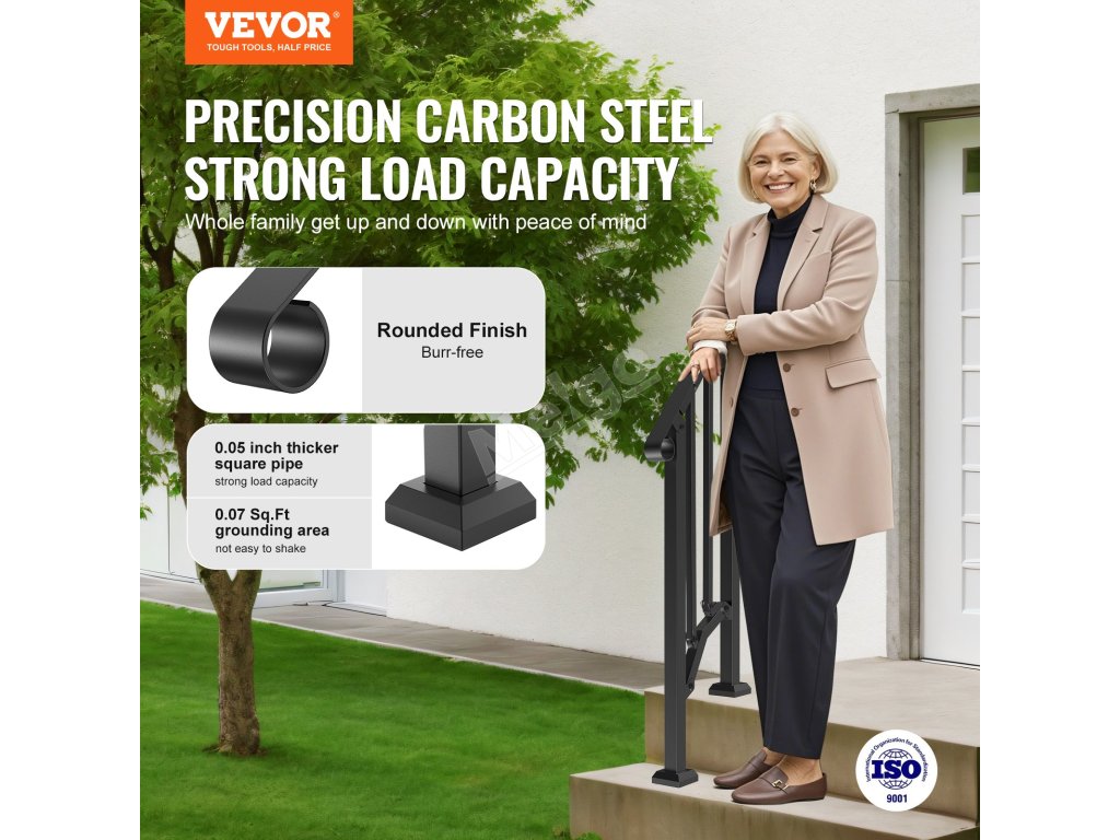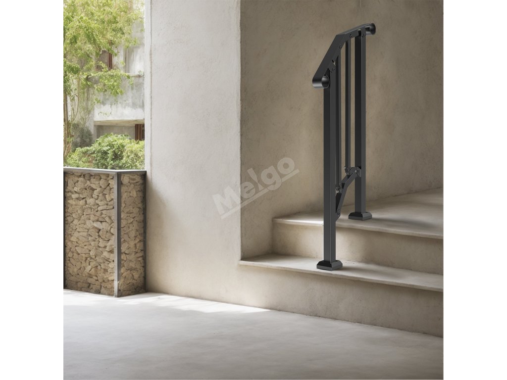 Zábradlí na vnější schody, 1–2 stupně, ocel, montážní set, černé