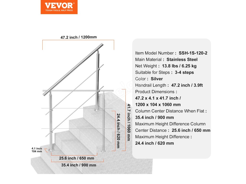Spolehlivé zábradlí VEVOR z nerezové oceli