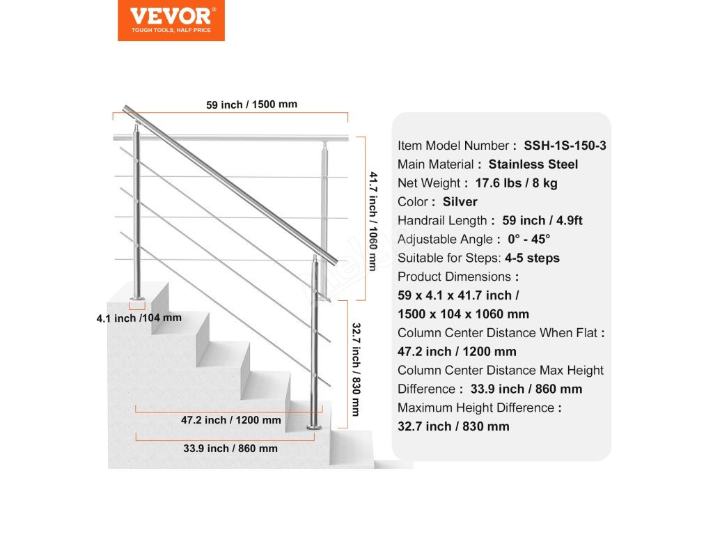 Spolehlivé zábradlí VEVOR z nerezové oceli