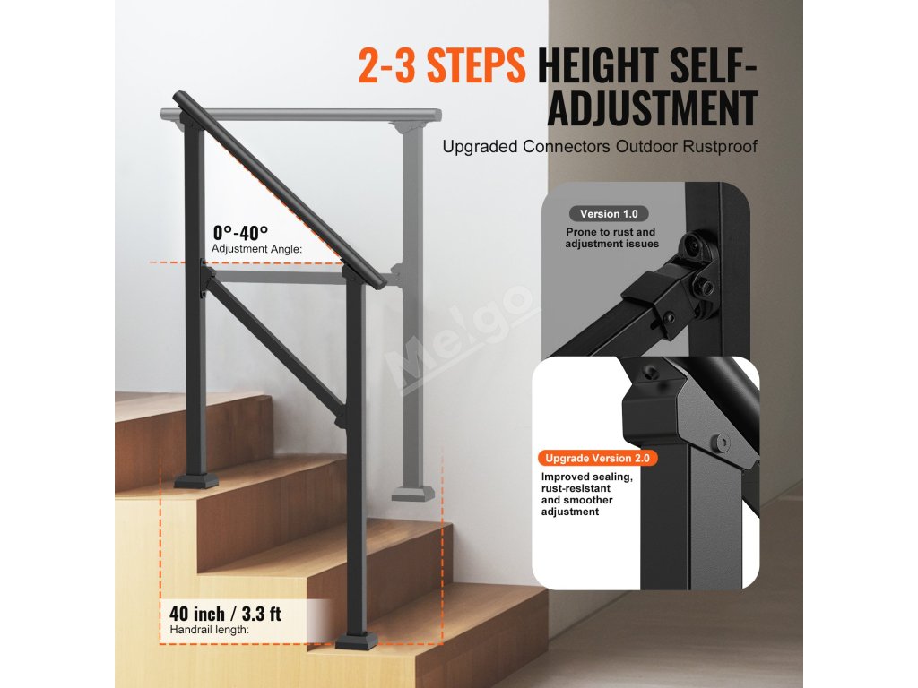 Úhel zábradlí lze nastavit podle počtu schodišťových stupňů, takže se přizpůsobí vašim požadavkům na schodiště.