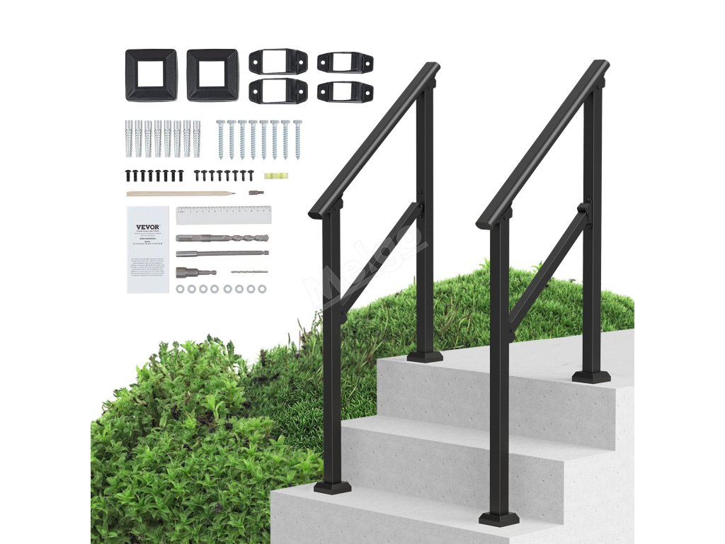 Zábradlí na vnější schody 2 ks 2–3 stupně ocel černé s montáží