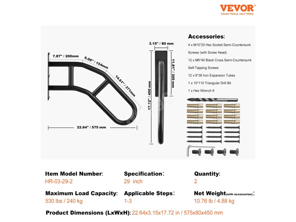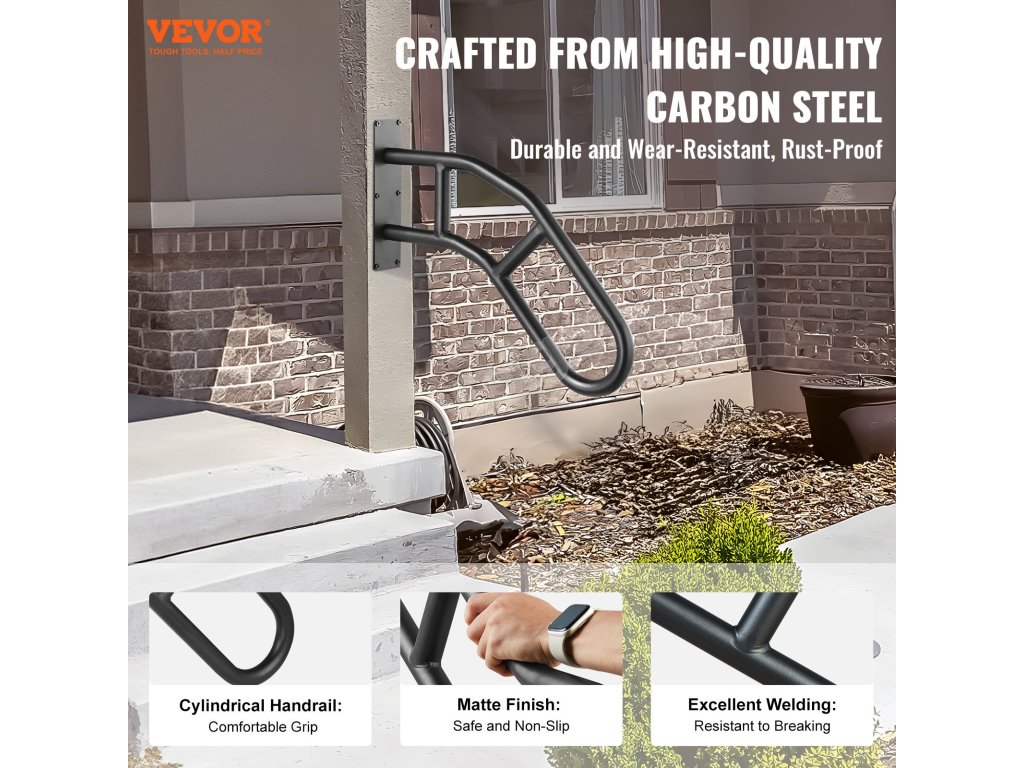 Naše venkovní nástěnná zábradlí vyrobená z prvotřídní uhlíkové oceli zaručují výjimečnou robustnost a silnou nosnost. Je vybaveno kovovými dilatačními trubkami a plně podpírá dospělé osoby, aniž by se kymácelo nebo deformovalo. Poskytuje bezpečnou oporu při chůzi do schodů a ze schodů.