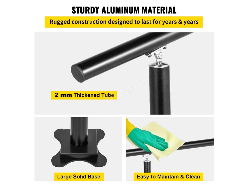 Naše hliníkové zábradlí unese zatížení až 165 liber/75 kg. Trubka je silná 0,08" /2 mm, takže se snadno nedeformuje ani neohýbá. Také 0,2"/5 mm silná základna poskytuje dodatečnou stabilitu a pevnou oporu.