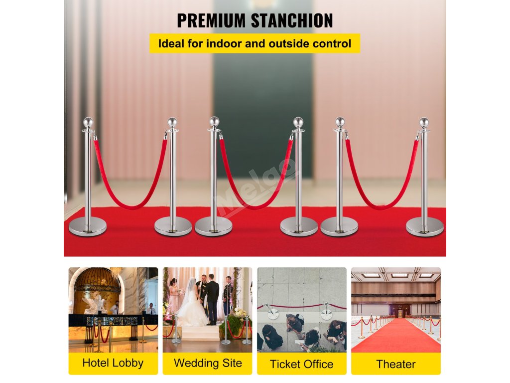 Naše tyč pro kontrolu davu je vhodná pro všechny typy akcí s červeným kobercem, kde je pohyb lidí velmi hustý, jako jsou svatby, hotely, výstavy atd. Umožňuje také seřadit lidi v pořádku a omezit výskyt nehod způsobených tlačenici.