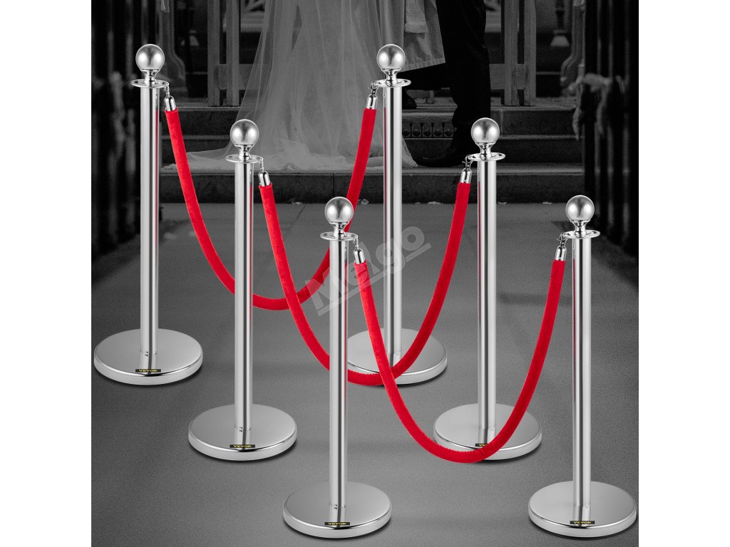 Zábradlové sloupy 6 ks, 3×5ft červená sametová lana, nerez, s koulí
