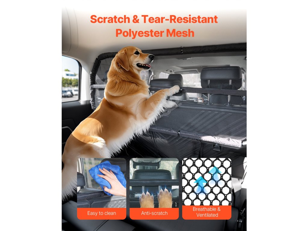 Měkká síťovaná konstrukce zábrany pro domácí mazlíčky zajišťuje jasnou viditelnost na zadní sedadlo během jízdy, čímž zvyšuje ochranu vašeho domácího mazlíčka i vaše pohodlí během jízdy.