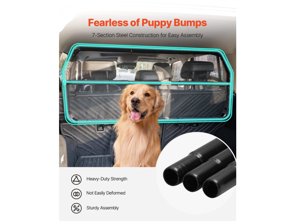 Tato zábrana pro psy SUV je vyrobena z ocelového rámu a prvotřídní silné polyesterové tkaniny a poskytuje zvýšenou odolnost a stabilitu. Nemusíte se obávat, že by váš mazlíček byl poškrábán nebo pokousán. Umožňuje také volné proudění chladného nebo teplého vzduchu klimatizace, čímž zajišťuje prodyšnost a pohodlí.
