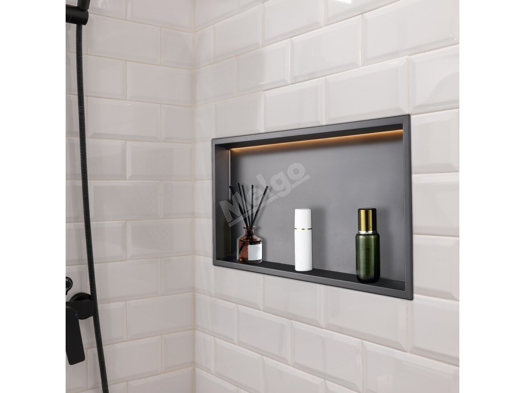 Zabudovaná sprchová police 33.0×63.5×10.2 cm, nerez, led, černá