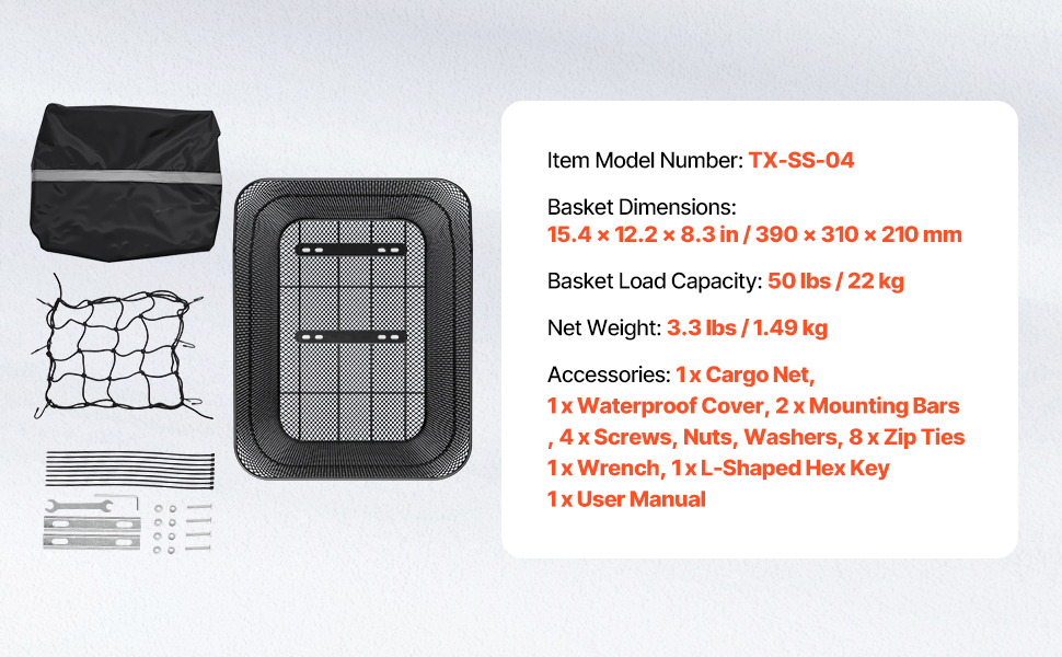 Zadní drátěný košík na kolo s vodotěsným krytem, síťkou a montáží