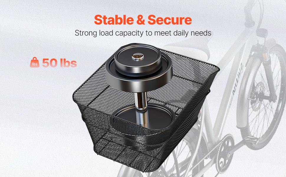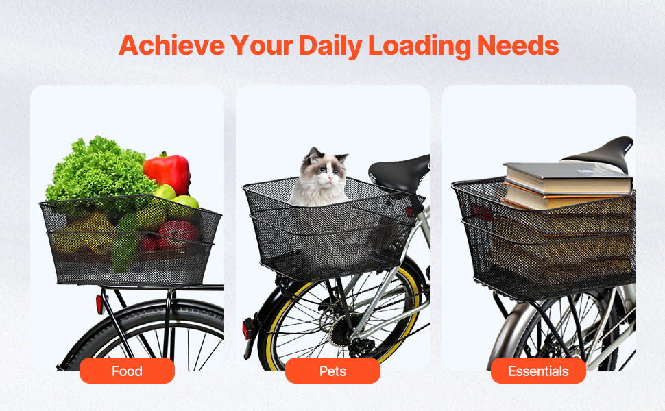 Tento stylový zadní košík na kolo doplní vaše kolo. S nosností 22 kg (50 liber) je ideální pro jídlo, domácí mazlíčky nebo zavazadla. Tento košík na kolo je vyroben z odolného kovu s antikorozní úpravou, snadno se instaluje, snadno se čistí a je ideální pro každodenní použití.