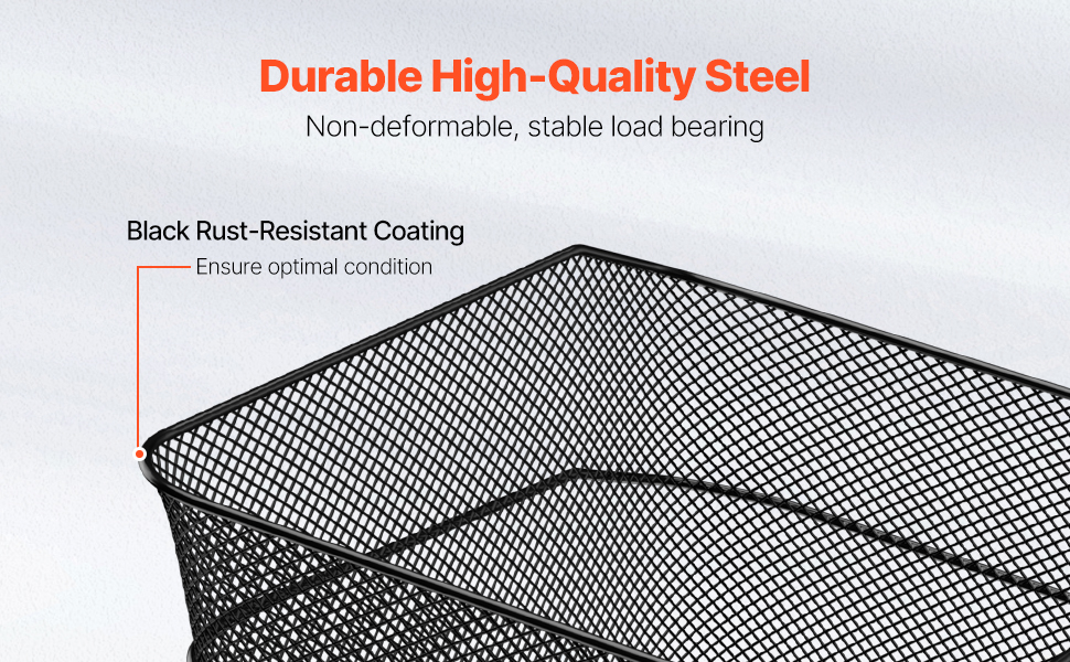 Košík na kolo je vyroben z robustního, vysoce pevného kovu, který zaručuje jeho trvanlivost a odolnost proti deformaci. Díky hladkému povrchu odolnému proti korozi je jízda na kole pohodlnější i za vlhkého a deštivého počasí.
