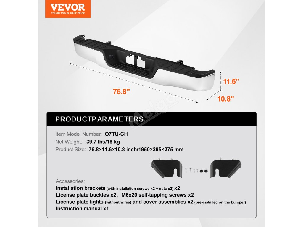 Zadní nárazník s krokem Tundra 07–13, se světlem SPZ, bez otvorů