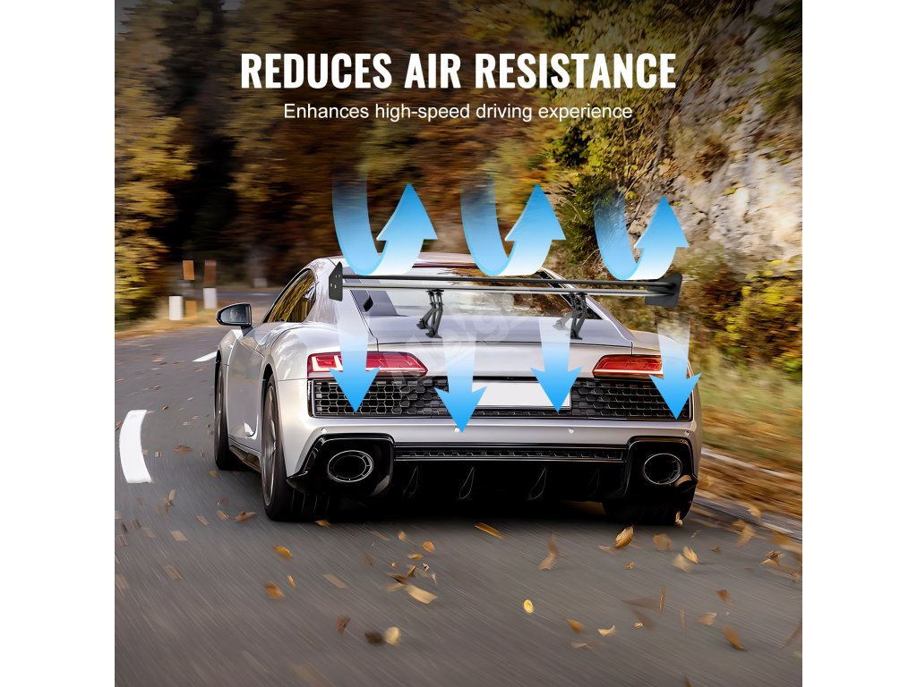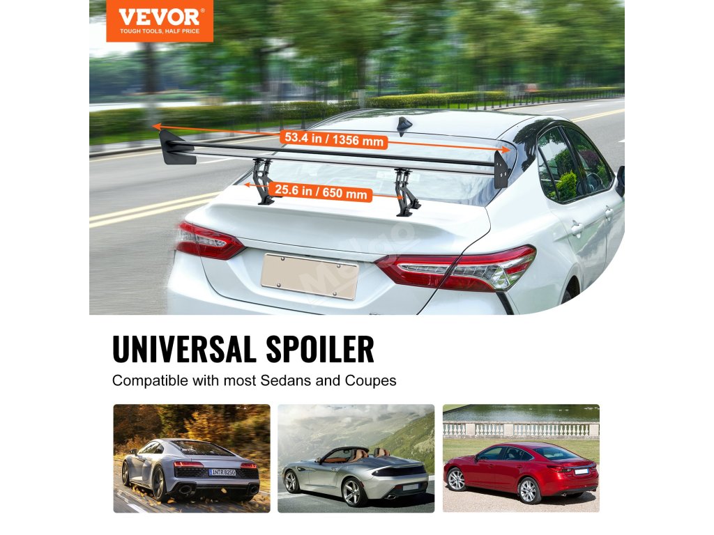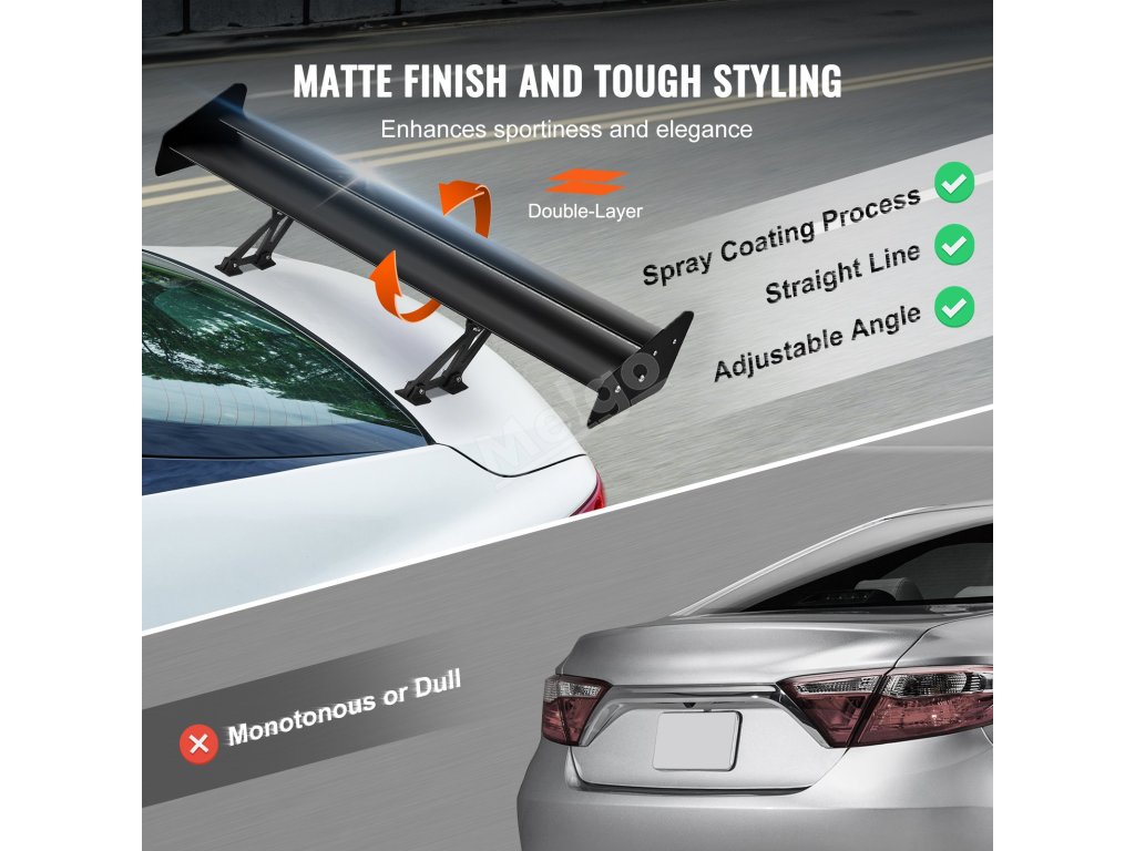 Tento univerzální spoiler je vyroben technologií nástřiku, která vytváří pokročilý matný černý povrch, který zabraňuje vyblednutí a připomíná styl závodů Formule 1. Úhel spoileru je nastavitelný.