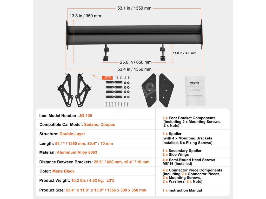 Tento dvouvrstvý spoiler s dlouhým držákem je kompatibilní s většinou sedanů a kupé a zbavuje vás starostí s přizpůsobením modelu vašeho vozidla. Je vhodnější pro závodní vozy.