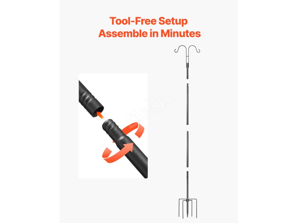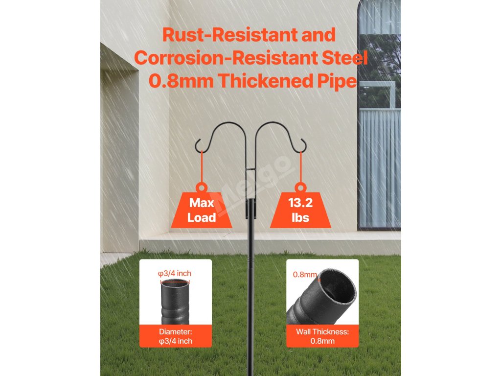 Tato tyč na krmítko pro ptáky je vyrobena ze silné oceli odolné proti korozi a je odolná a pevná. Její stabilní základna zaručuje, že zůstane ve vzpřímené poloze i za větrného počasí, a vy tak budete mít klid. Všestranný design vyhoví všem vašim venkovním dekorativním potřebám.