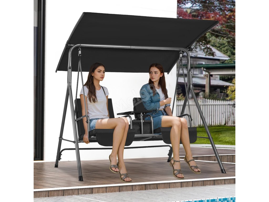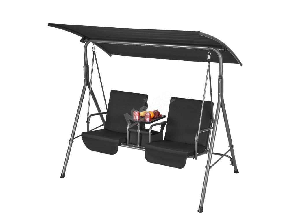 Zahradní houpačka pro 2 osoby, nastavitelná stříška, ocelový rám