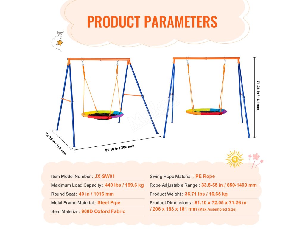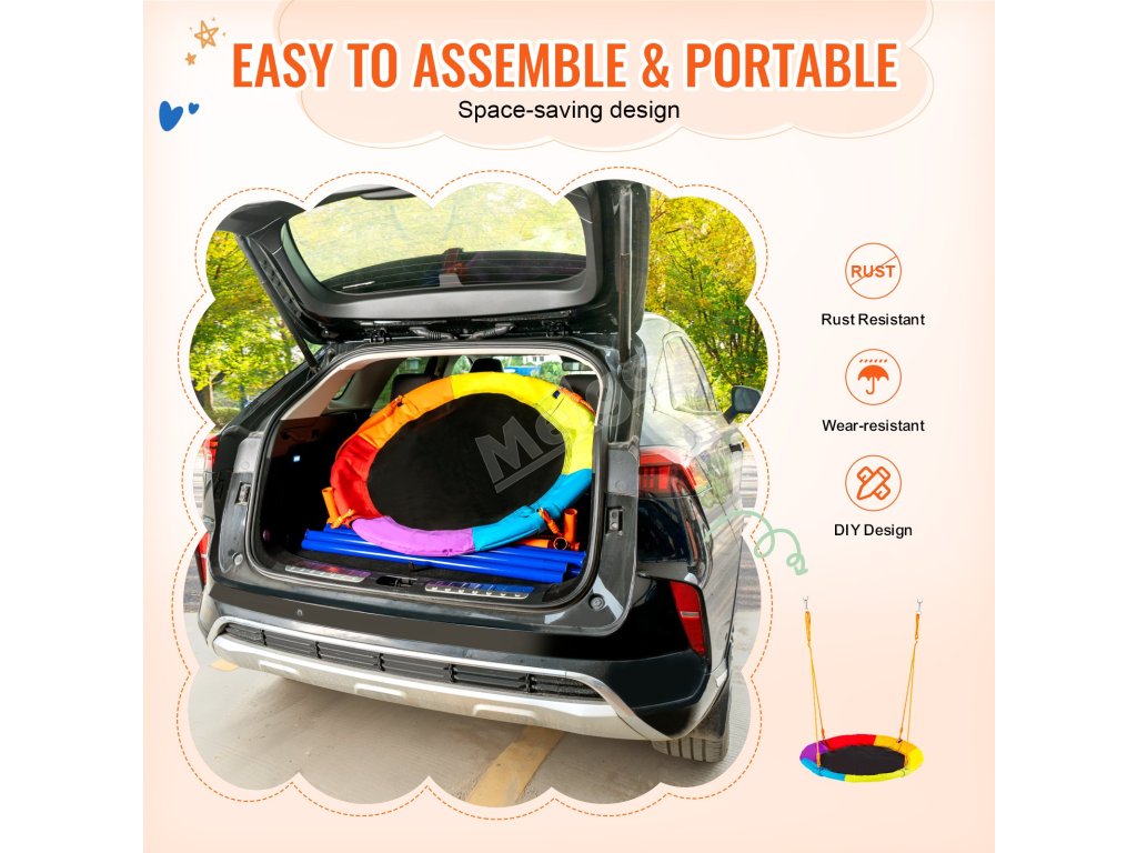 Naše venkovní houpačka pro děti Obsahuje jasný a podrobný návod pro snadnou montáž s vašimi milovanými dětmi, což podporuje příjemné rodinné chvíle. Odnímatelný kovový rám umožňuje pohodlné skladování.