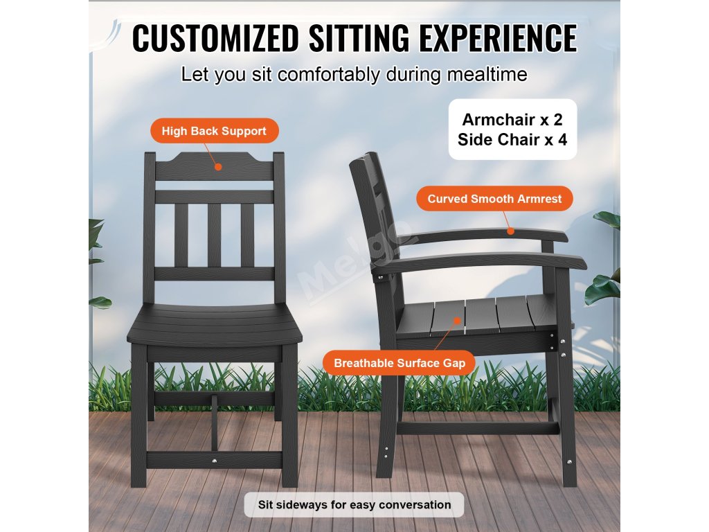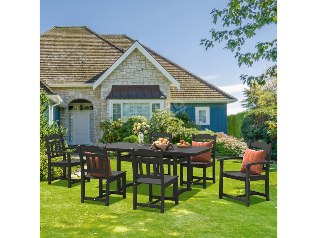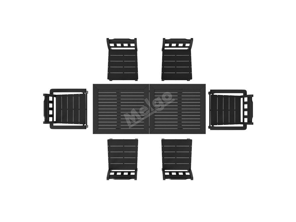 Zahradní jídelní set 7-dílný, obdélníkový stůl a židle, černý