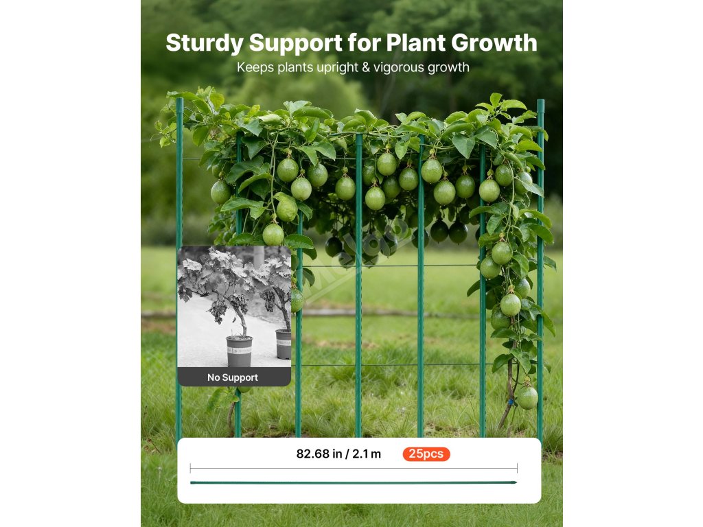 Zahradní kolíky 25 ks, 2100 mm, kovové s plastovým povrchem a hrotem