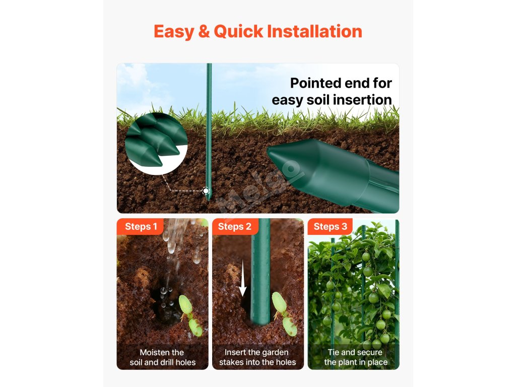 Tyto zahradní kůly bezpečně podpírají stonky rostlin, jsou vhodné pro stabilizaci rostlin a vedení popínavých rostlin. Účinně zabraňují převrácení vlivem větru, deště nebo váhy, minimalizují lámání větví a zajišťují silný růst rostlin.