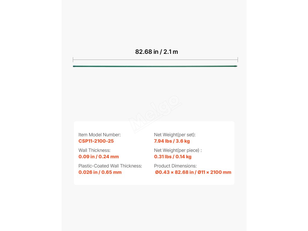| Rozměry výrobku | ø0,43 x 82,68/Ø11 x 2100 mm |