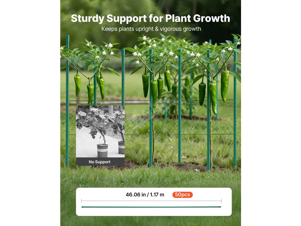 Tyto vysoké zahradní kůly přizpůsobují oporu potřebám každé rostliny tím, že odpovídají správné velikosti kůlů pro různé typy rostlin. Tím se zabrání ohýbání způsobenému nedostatečnou oporou nebo nadměrným tlakem a zajistí se efektivní a spolehlivé zahradničení.
