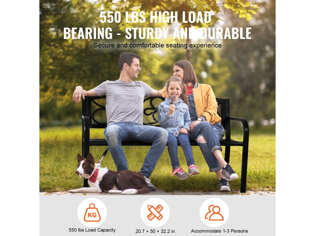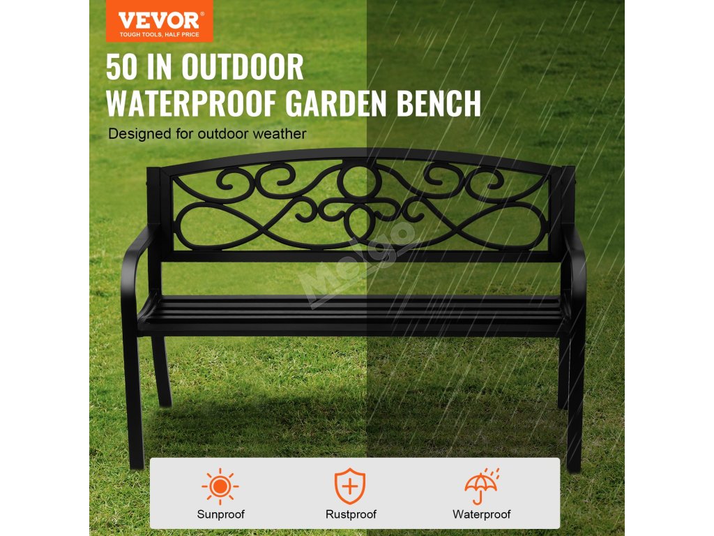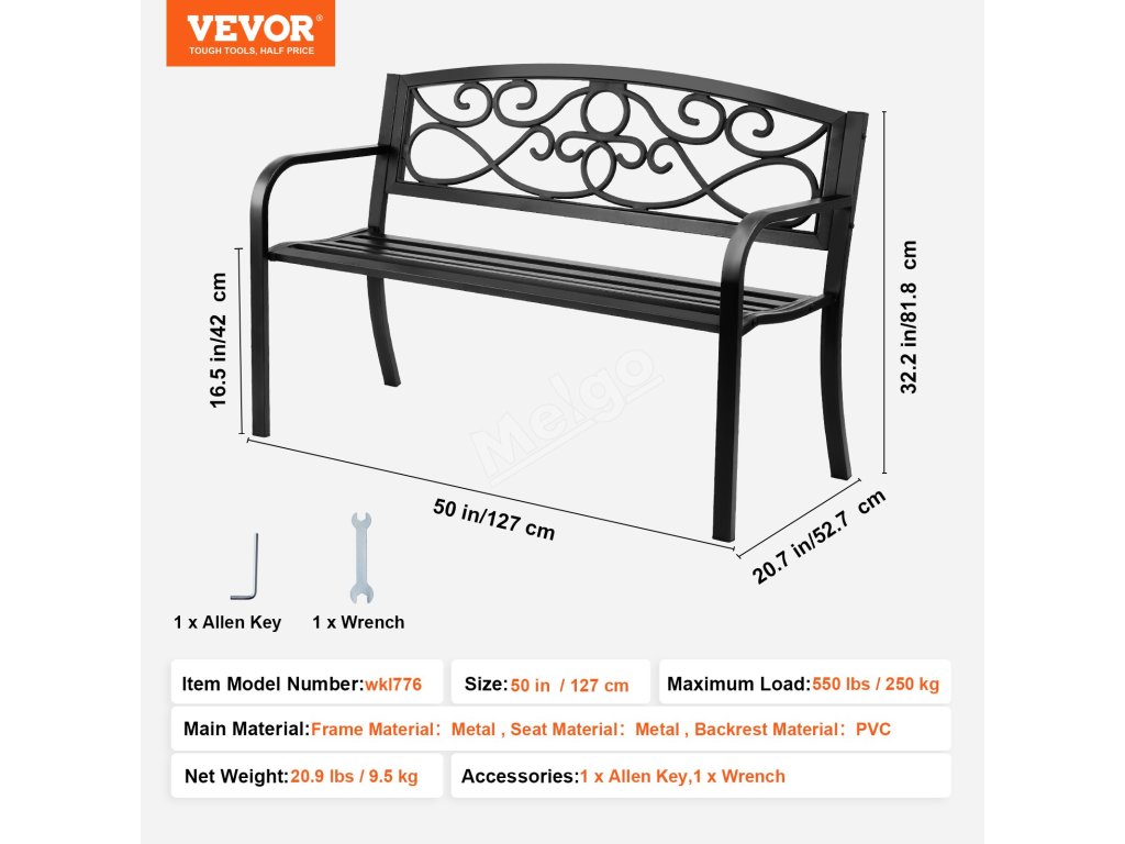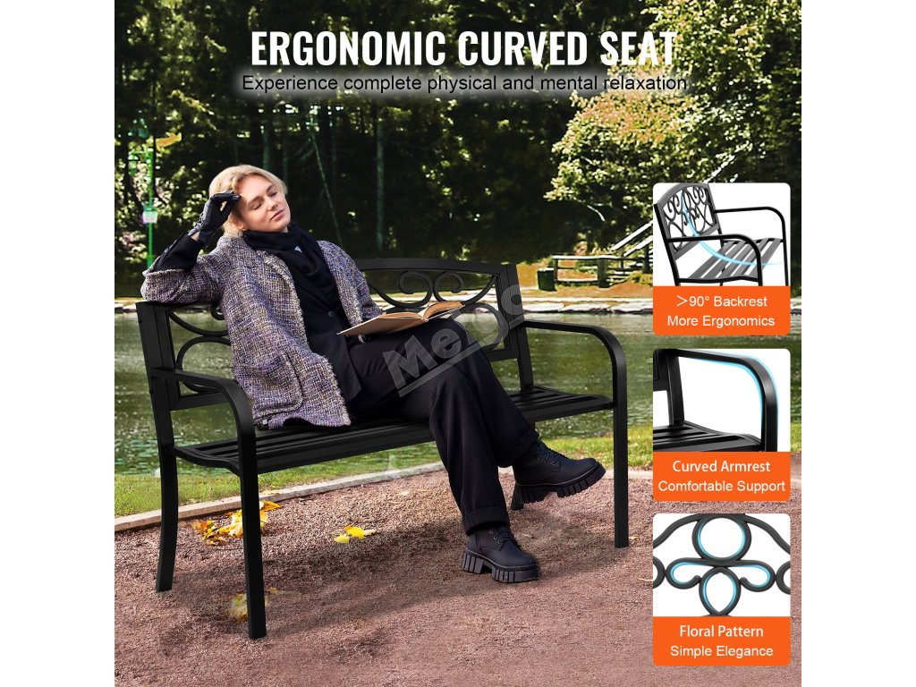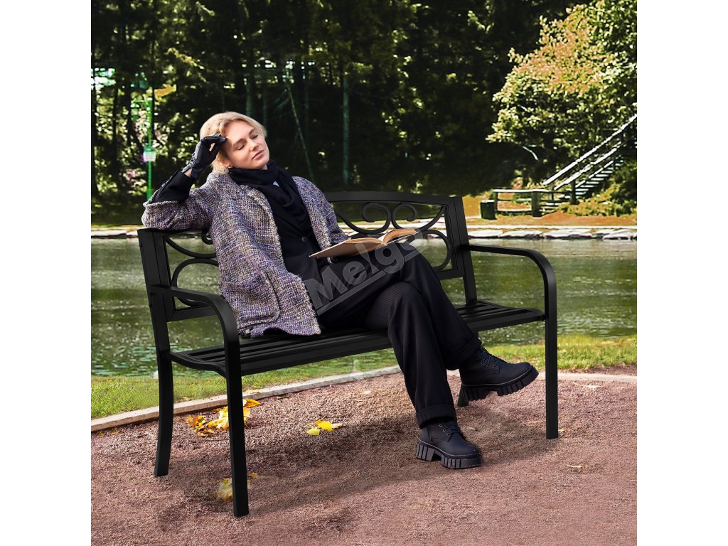 Zahradní kovová lavička 50 inches opěradlo a područky, nosnost 550 lbs