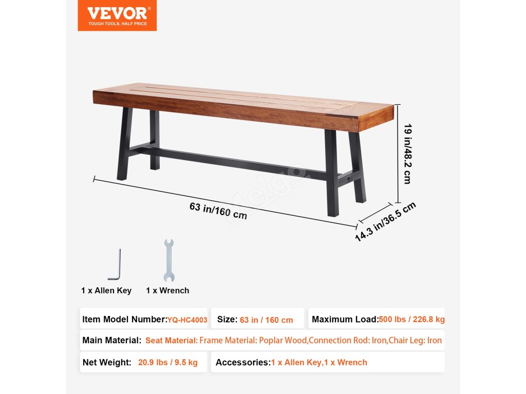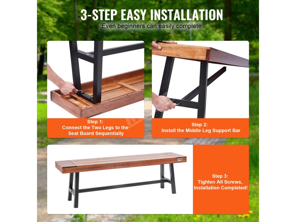Zahradní lavička 63 inches, dřevo, kovové nohy, nosnost 500 lbs