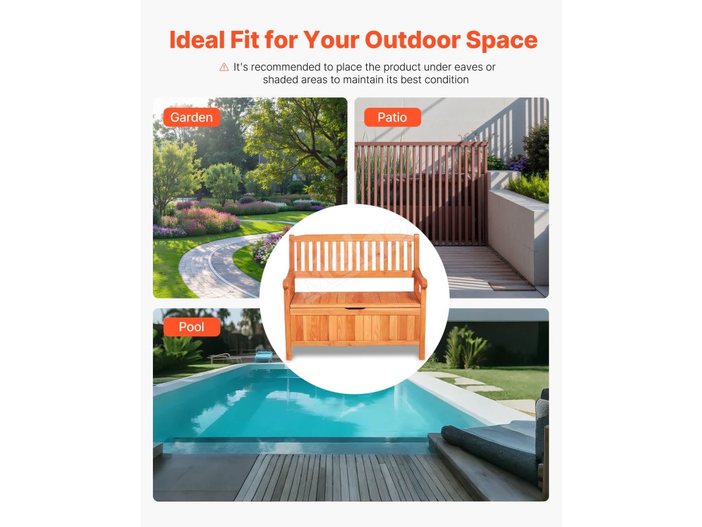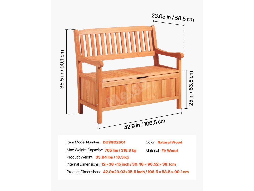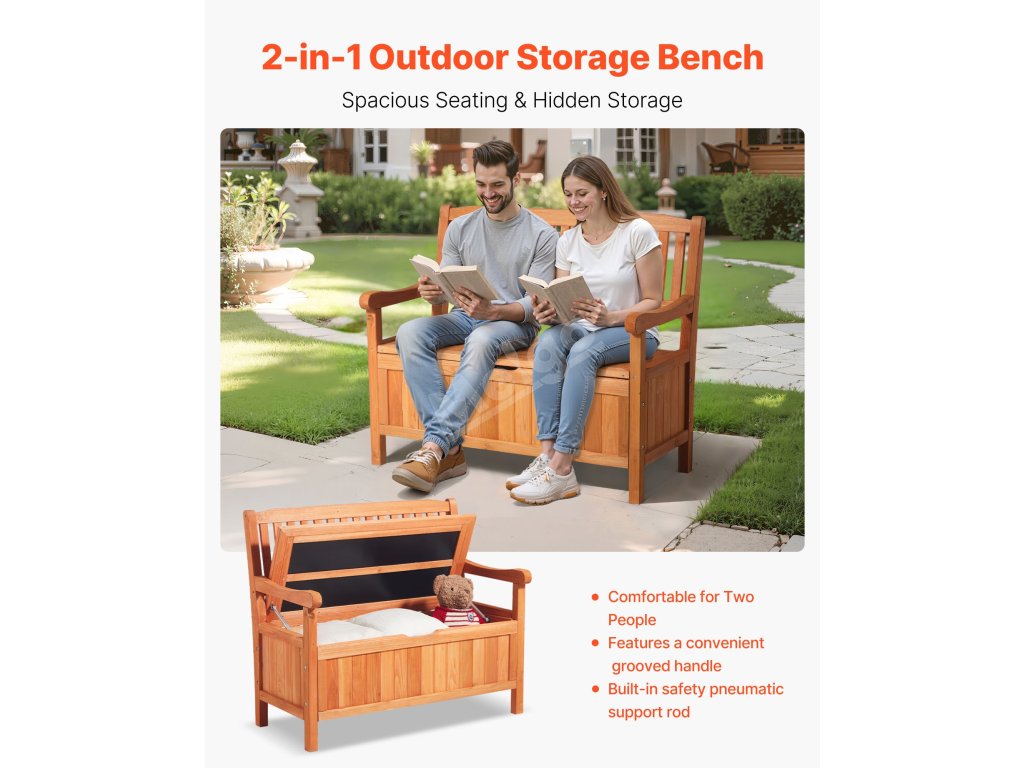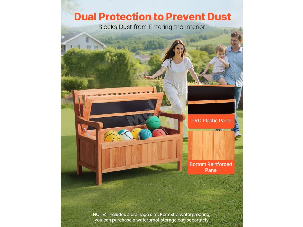 Tato venkovní úložná lavice 2 v 1 (38,78 × 16,02 × 10,04 cm) nabízí pohodlné sezení pro dvě osoby a spoustu úložného prostoru. Je vyrobena z kvalitního cedrového dřeva, unese až 705 kg a odolává korozi. Dvojitá prachotěsná konstrukce udržuje předměty v čistotě. Snadno se sestavuje, je ideální pro venkovní i vnitřní použití.