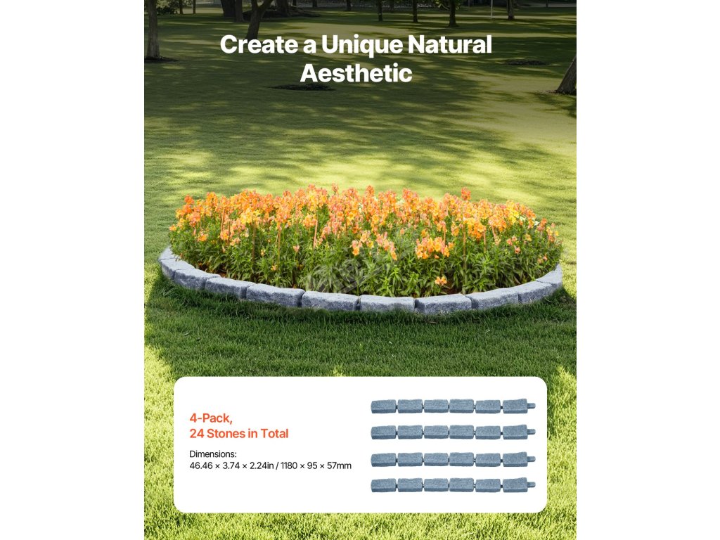 Tento kamenný krajinný lem má realistickou strukturu kamene, která bez námahy zvýší vizuální přitažlivost vaší zahrady, bazénu a chodníků. Modulární konstrukce umožňuje rychlou instalaci. Tato obruba trávníku je vyrobena z vysoce kvalitního PE, je odolná proti vyblednutí, rezavá, lehká a má dlouhou životnost.