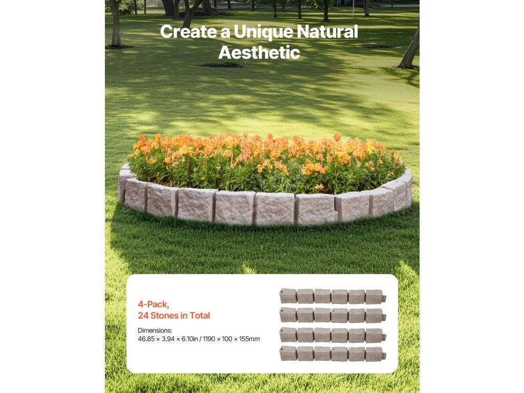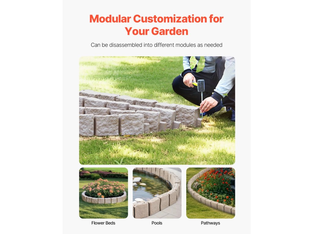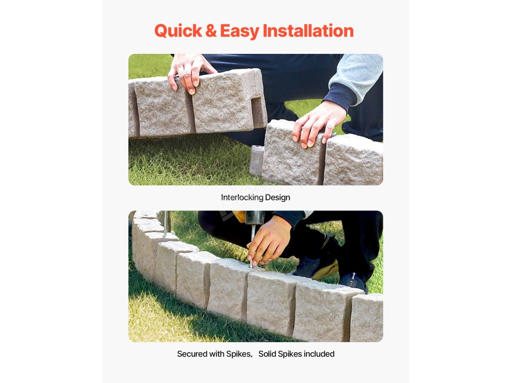Tento kamenný krajinný lem má realistickou strukturu kamene, která bez námahy zvýší vizuální přitažlivost vaší zahrady, bazénu a chodníků. Modulární konstrukce umožňuje rychlou instalaci. Tato obruba trávníku je vyrobena z vysoce kvalitního PE, je odolná proti vyblednutí, rezavá, lehká a má dlouhou životnost.