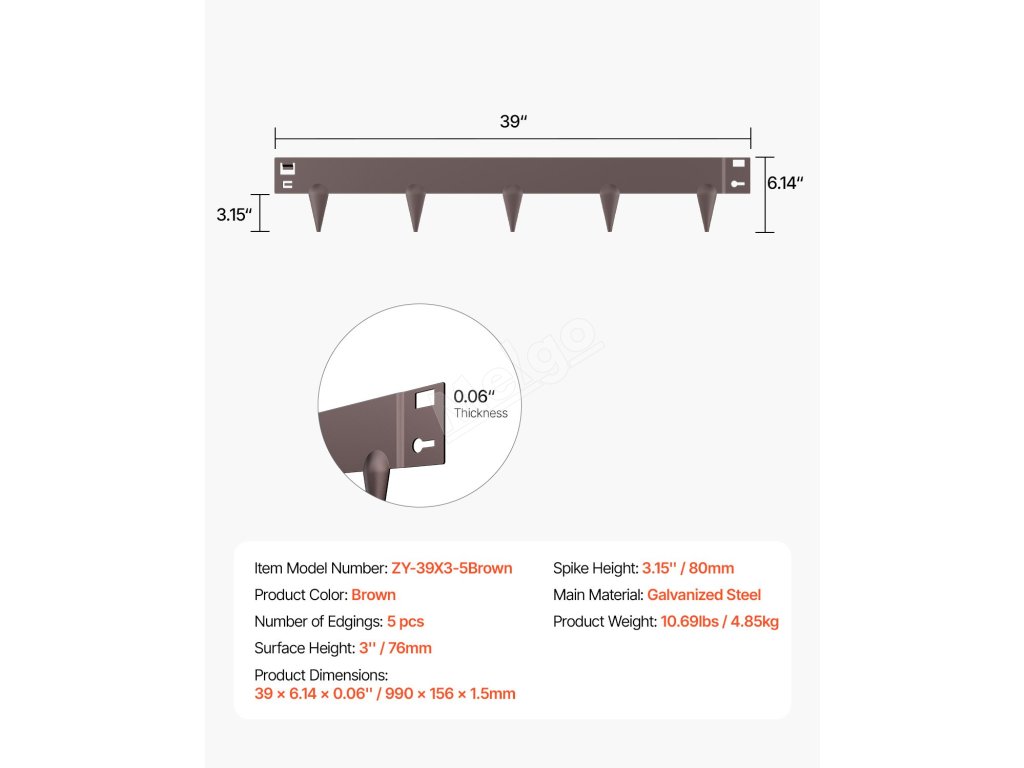 Naše kovové krajinné obruby jsou vyrobeny z pozinkované oceli s povrchovou úpravou práškovým lakem odolným proti korozi a jsou konstruovány tak, aby odolávaly povětrnostním vlivům. Snadno se instaluje a je dostatečně pružná, aby se ohnula do jakéhokoli tvaru, takže je ideální pro vytváření ohraničení zahrad a okrajů cest. Efektivní řešení pro udržení pořádku v krajině.