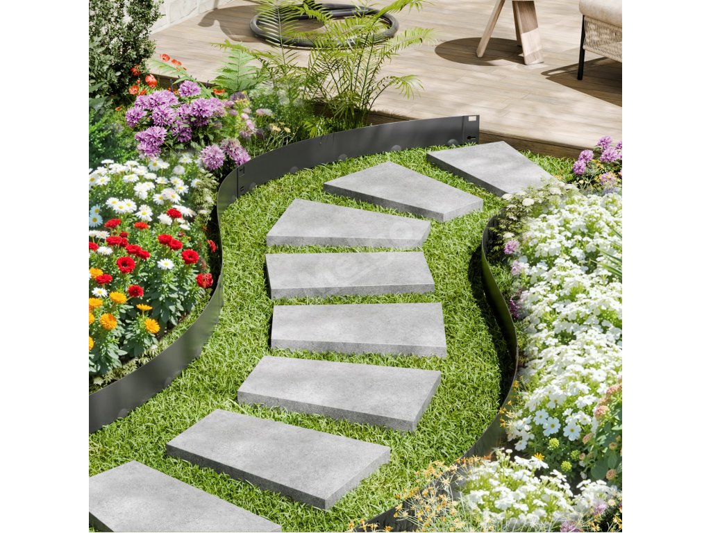 Naše kovové krajinné obruby jsou vyrobeny z pozinkované oceli s práškovou povrchovou úpravou odolnou proti korozi a jsou odolné vůči povětrnostním vlivům.