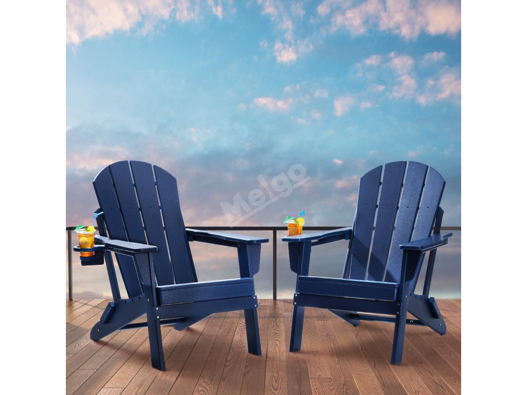 Zahradní plastová adirondack křesla 2 ks, skládací, s držákem, modrá