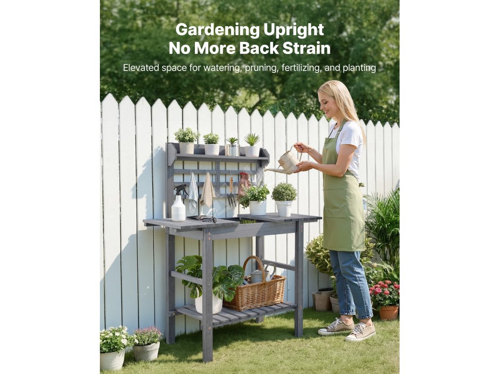 Tento stolek na sázení je skvělým pomocníkem při zahradničení. Poskytuje vyvýšený prostor pro zalévání, stříhání, hnojení a sázení. Nemusíte se ohýbat ani klečet, což vám umožní pracovat vestoje bez bolesti zad.