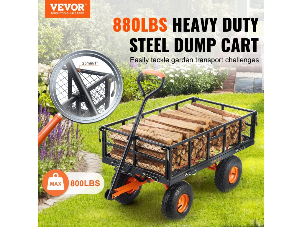 Tento zahradní vozík má 1" silný kovový rám, který zajišťuje stabilitu a spolehlivost. Nabízí silnou nosnost 880 lb, díky které se těžký náklad zdá být lehký. Jeho prostorný objem 3,2 cm3 činí z každé přepravy hračku.