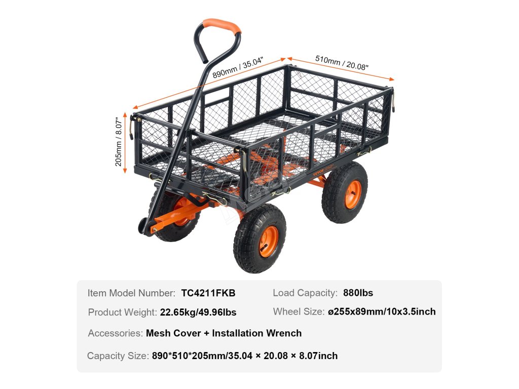 Zahradní překlápěcí vozík s kovovým rámem nosnost 880 lbs/399.2 kg