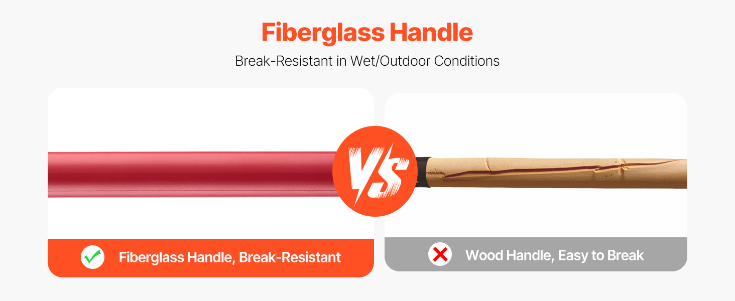 Rukojeť ze skelných vláken je odolná vůči vysokému namáhání a nárazům, zůstává nepoškozená a odolná vůči korozi. Na rozdíl od dřevěných rukojetí nenabobtnává, nedeformuje se ani nepraská v důsledku absorpce vody.