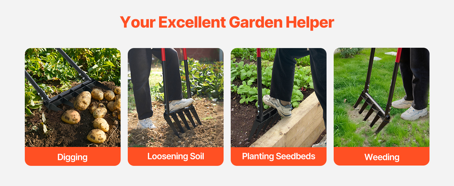 Tyto zahradní vidle kombinují funkce, jako je kopání, kypření půdy, odstraňování plevele a sázení semen, a splňují tak všechny vaše rozmanité zahradnické potřeby.