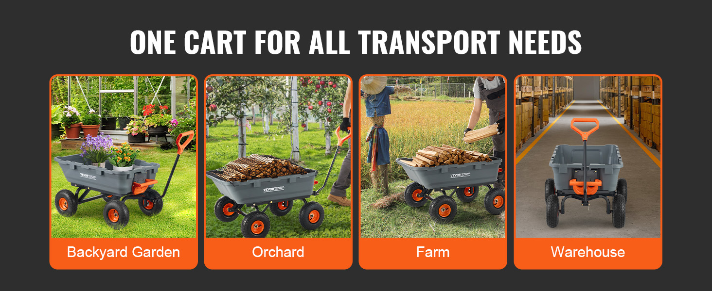 Tento sklápěč splní všechny vaše přepravní potřeby - od zkrášlování zahrad po údržbu sadů, sklizeň plodin na farmách nebo řízení skladové logistiky. Je to váš ideální společník pro každý úkol!