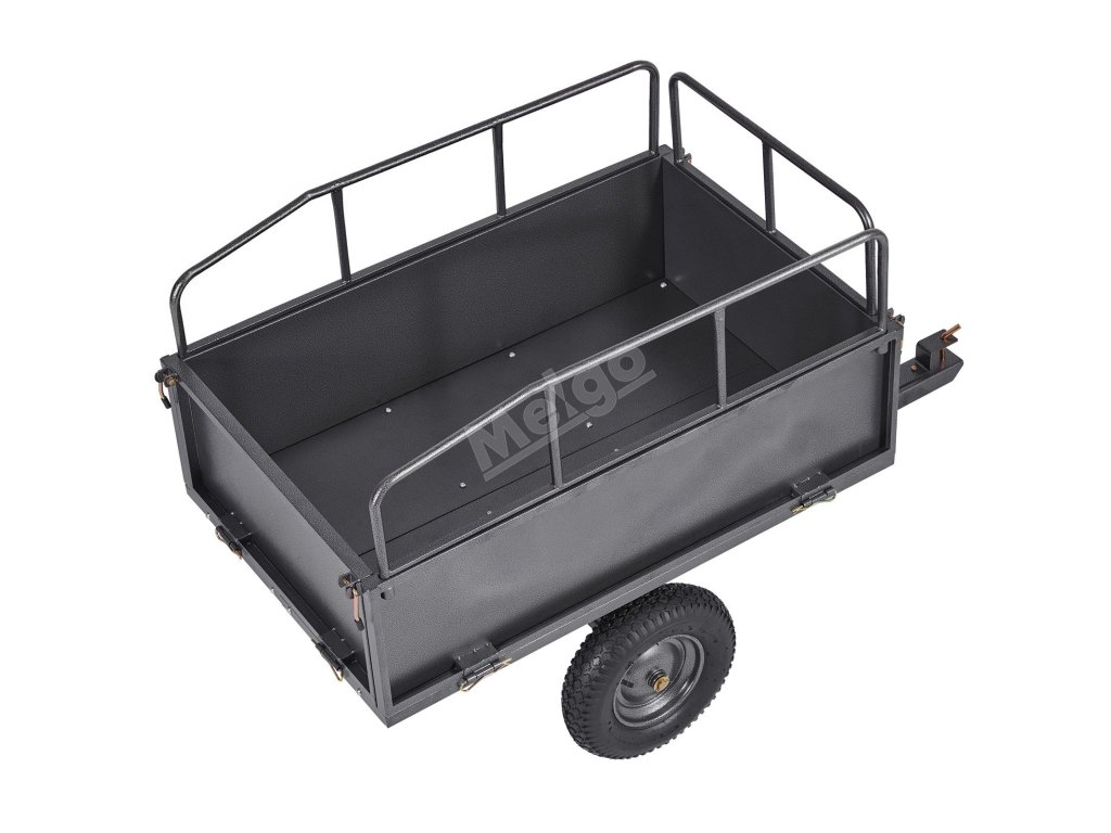 Tento zahradní přívěs s ideálním designem a objemem 17 metrů krychlových je určen pro přepravu zahradního nářadí, dřeva a zeminy. Třístranné ochranné lišty zabraňují pádu předmětů, takže přeprava je bezpečnější a pohodlnější.